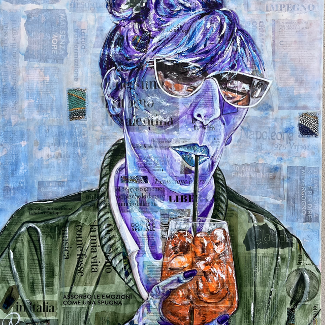 Quel plaisir de rencontrer cette femme singulière, dégustant ce breuvage bien connu. Marina rencontrée à Milan lors d’ExpoMetro a été créée sur des collages italiens et des échantillons d’oeuvres recueillis sur place...